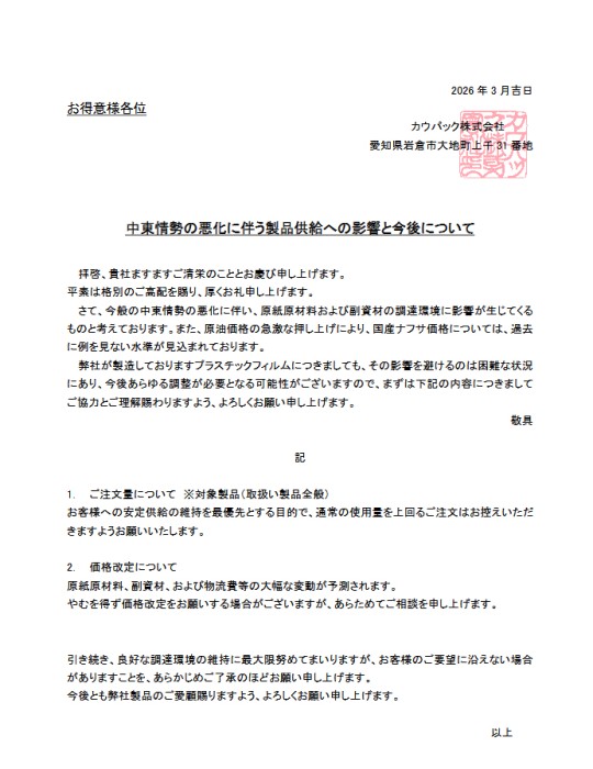 ご不便をおかけいたしますが、何卒よろしくお願い申し上げます。